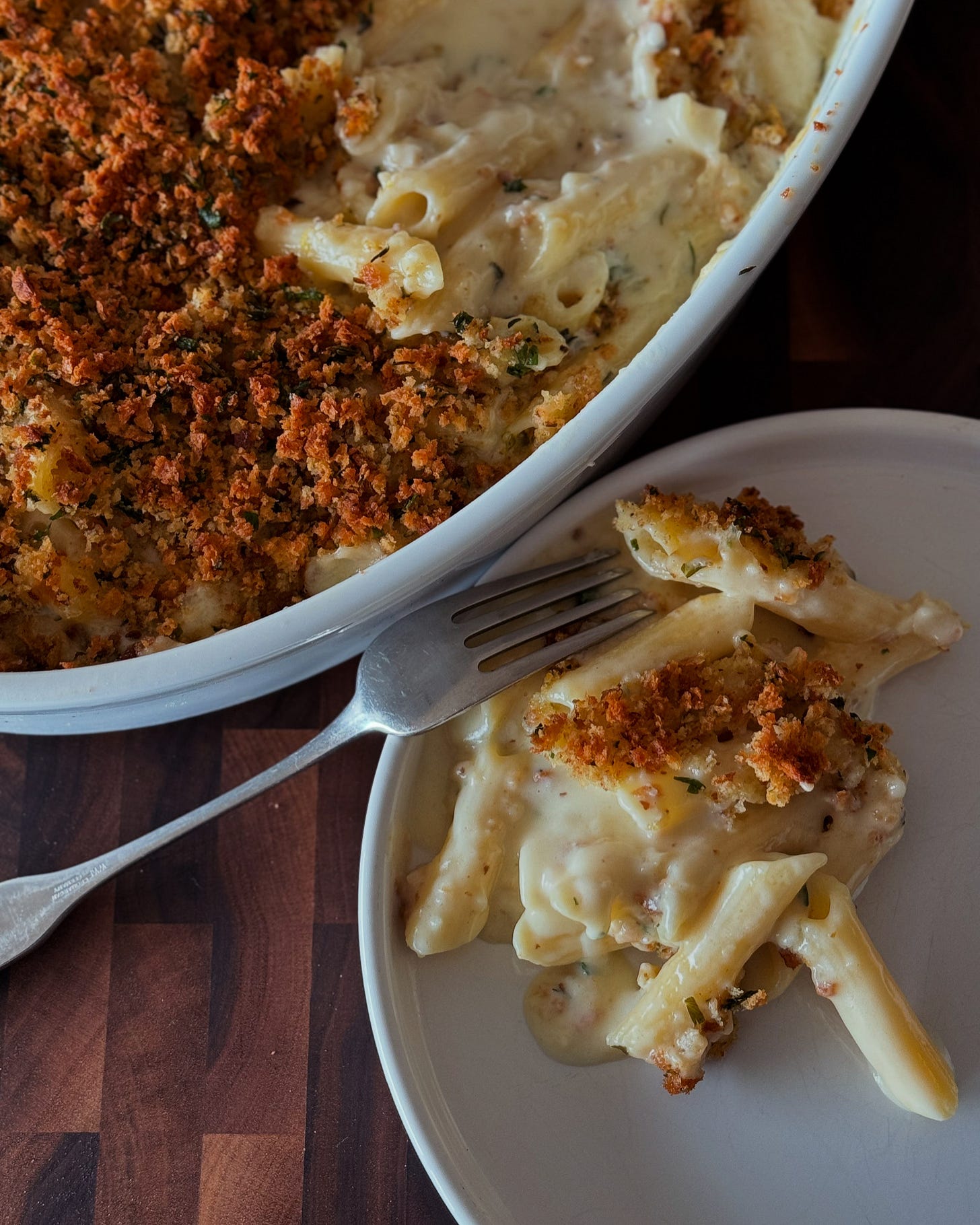 With extra crunchy garlic-herb-lemon zest breadcrumb topping